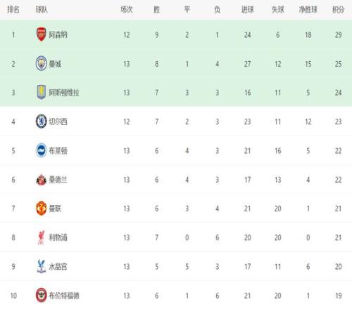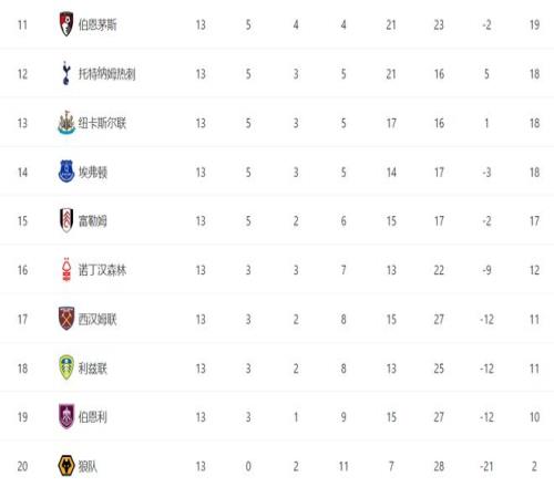前一个比赛日,曼城3-2绝杀利兹联,热刺1-2输给富勒姆,桑德兰3-2险胜伯恩茅斯,布伦特福德3-1击败伯恩利,埃弗顿1-4惨败纽卡斯尔。