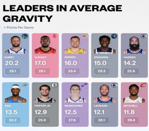 火箭队的射手群失常,这是球队目前一直在输球的关键所在。所以说,火箭队的射手群需要大换血。有一项关键的数据,也能证明火箭队的射手群有多不靠谱。根据统计显示,本赛季到目前为止,在“引力值”排行榜当中,勇士队的超级射手库里排名第一,而火箭队的巨星杜兰特排名第二,湖人队的东契奇排名第三,第四位是森林狼核心爱德华兹,第五位是火箭旧将詹姆斯·哈登。所谓的引力值,就是一位球员吸引对方防守的能力。我们基本上可以看到,杜兰特每次一拿球就能吸引对方的两人甚至是三人包夹。