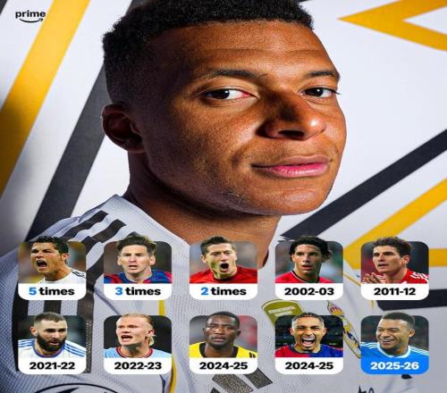姆巴佩成为欧冠联赛历史上第10位在单赛季打进12球或以上的球员: